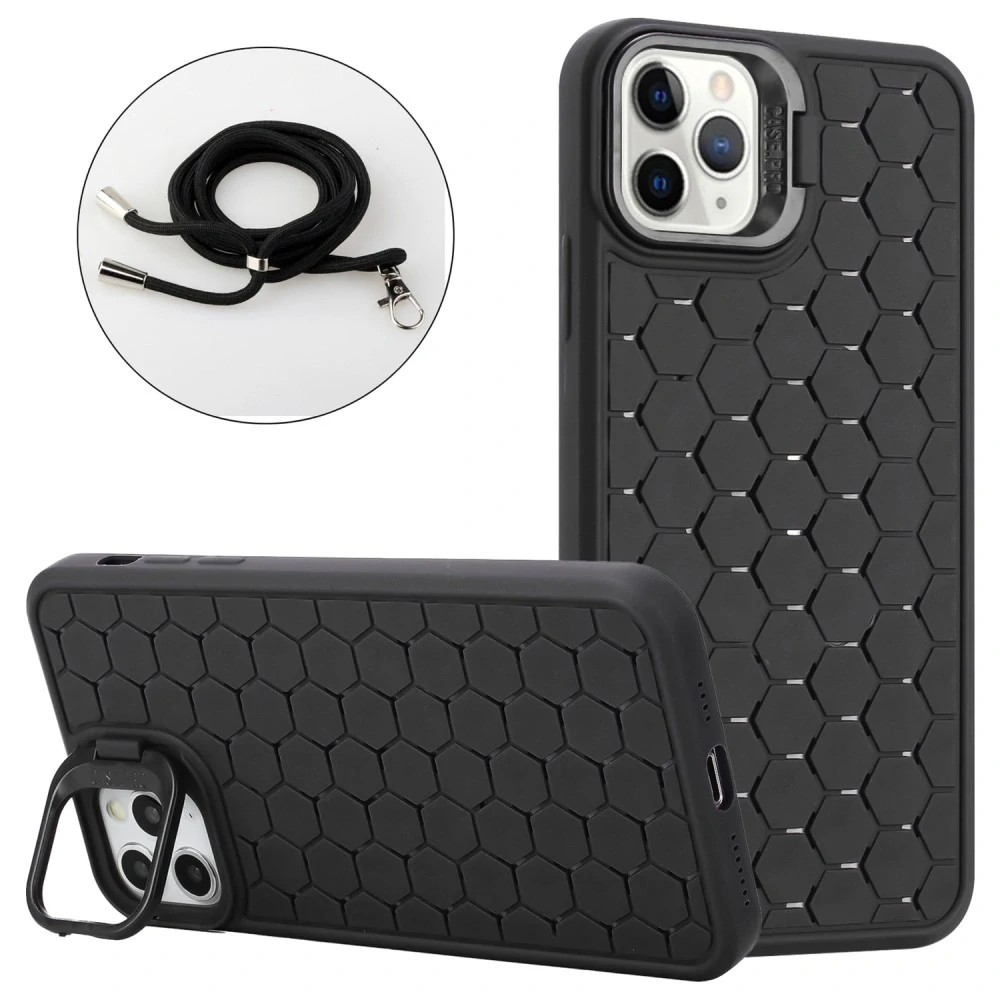 Kryt na iPhone 14 Pro Honeycomb s podporou MagSafe a šňůrkou na krk černý