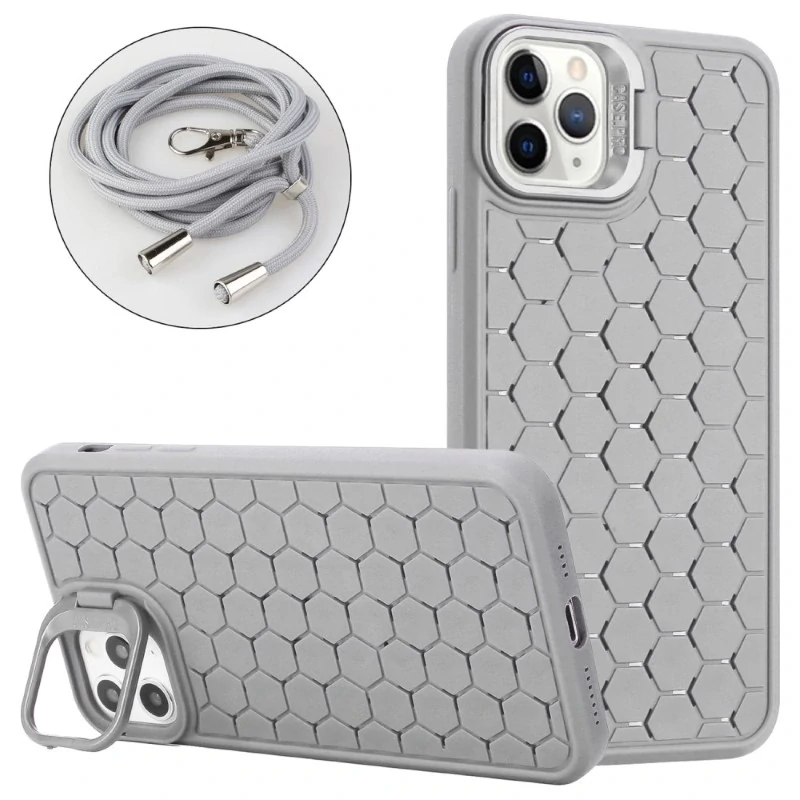Kryt na iPhone 14 Pro Max Honeycomb s podporou MagSafe a šňůrkou na krk šedý