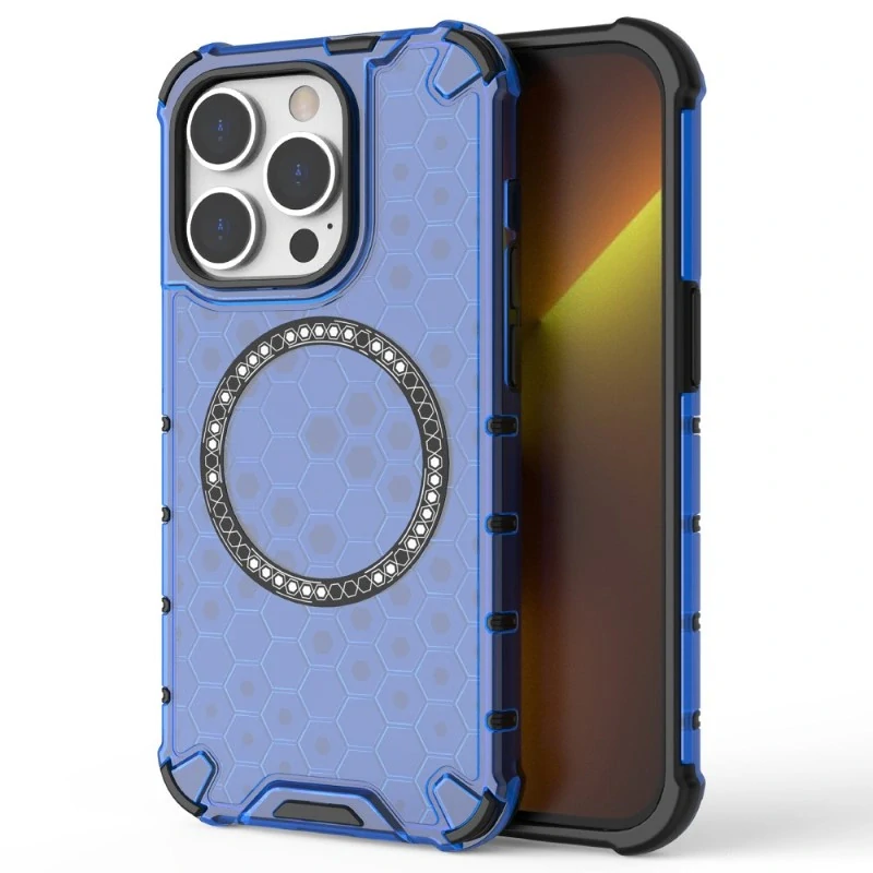 - Kryt na iPhone 14 Pro odolný Honeycomb s podporou Magsafe modrý