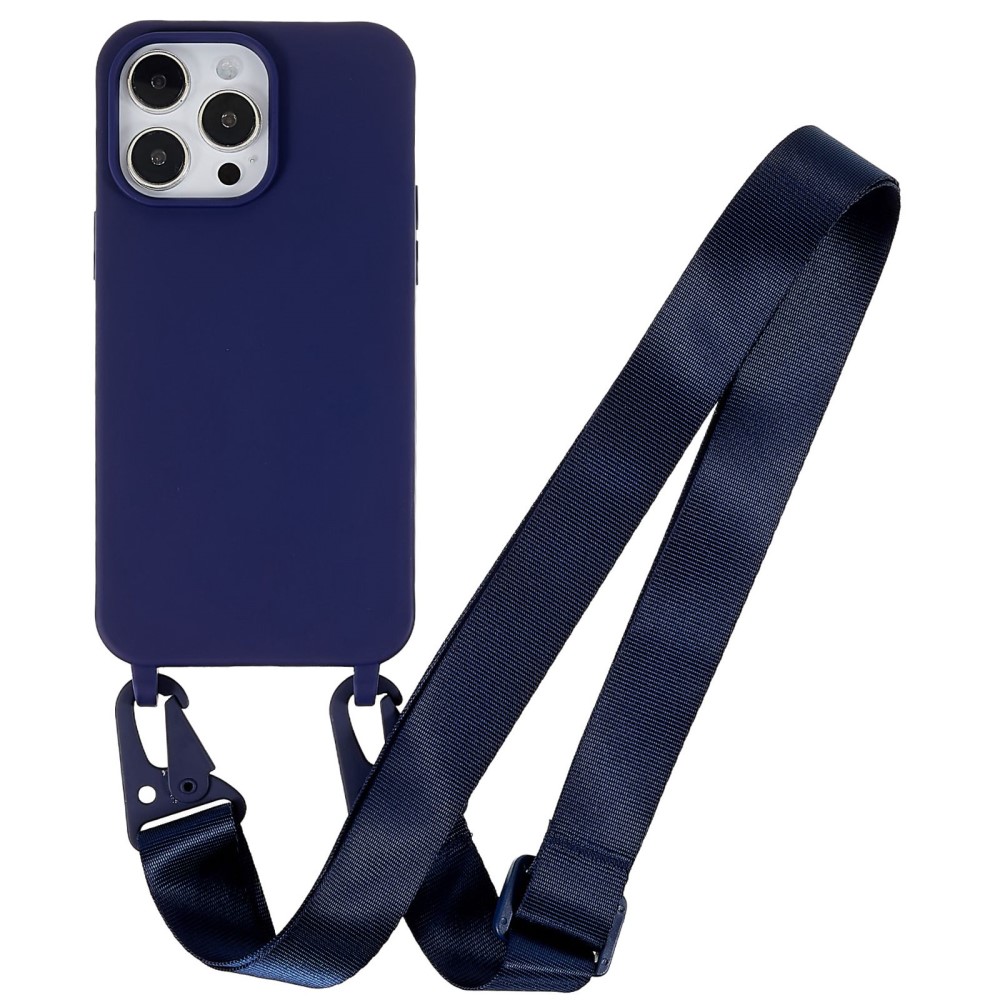 Kryt na iPhone 15 Pro Max gumový se šňůrkou na krk modrý
