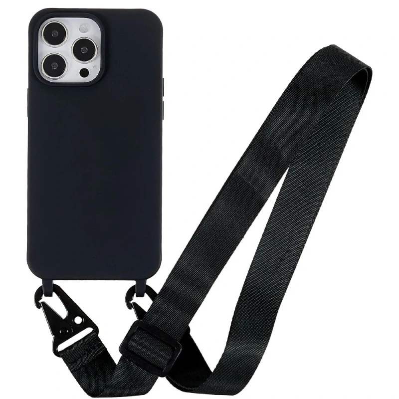 Kryt na iPhone 16 Pro Max gumový se šňůrkou na krk černý