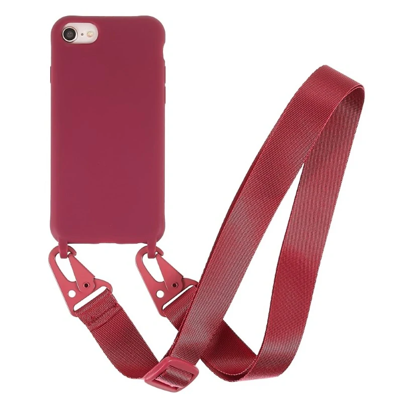 Kryt na iPhone 7 / 8 / SE ( 2020 / 2022 ) gumový se šňůrkou na krk vínový