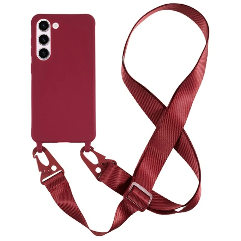 - Kryt na Samsung Galaxy S23 gumový se šňůrkou na krk vínový